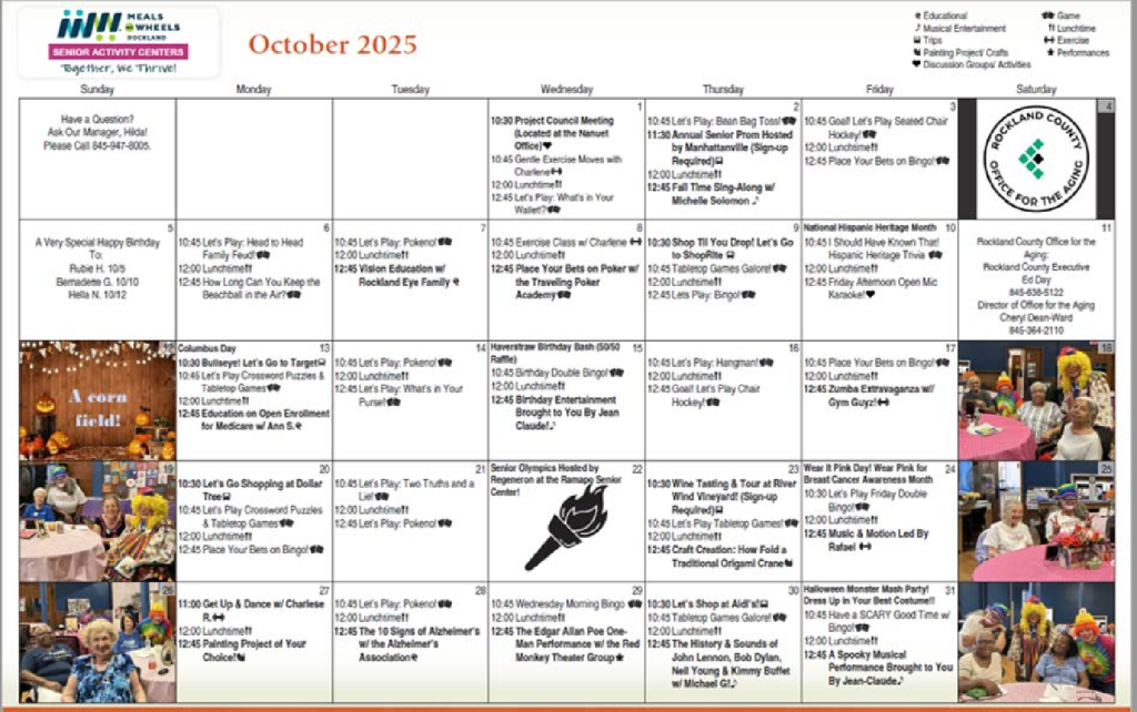 This program is supported in part by the Rockland County Office for the Aging, the New York State Office for the Aging, the Administration on Aging and the County of Rockland. Contributions are voluntary and confidential and used to expand services. Services will not be denied if unable or unwilling to contribute. For those who self-disclose income at or above 185 percent of the Federal Poverty Level, the suggested contribution is equal to the service cost.