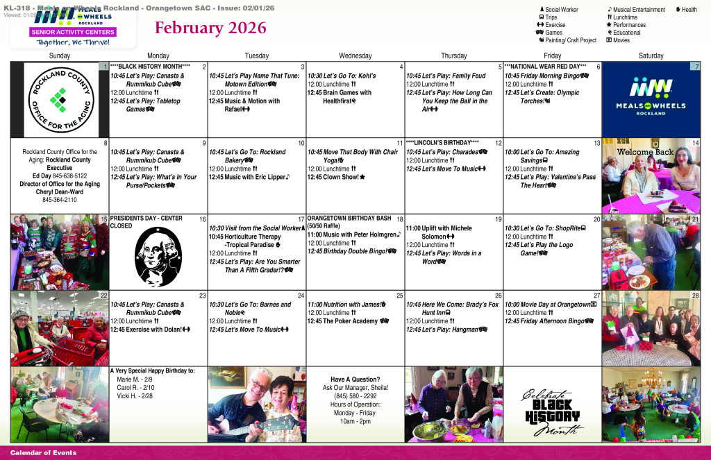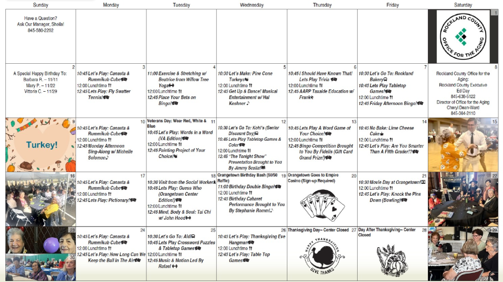 This program is supported in part by the Rockland County Office for the Aging, the New York State Office for the Aging, the Administration on Aging and the County of Rockland. Contributions are voluntary and confidential and used to expand services. Services will not be denied if unable or unwilling to contribute. For those who self-disclose income at or above 185 percent of the Federal Poverty Level, the suggested contribution is equal to the service cost.